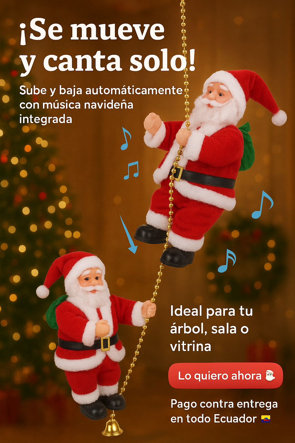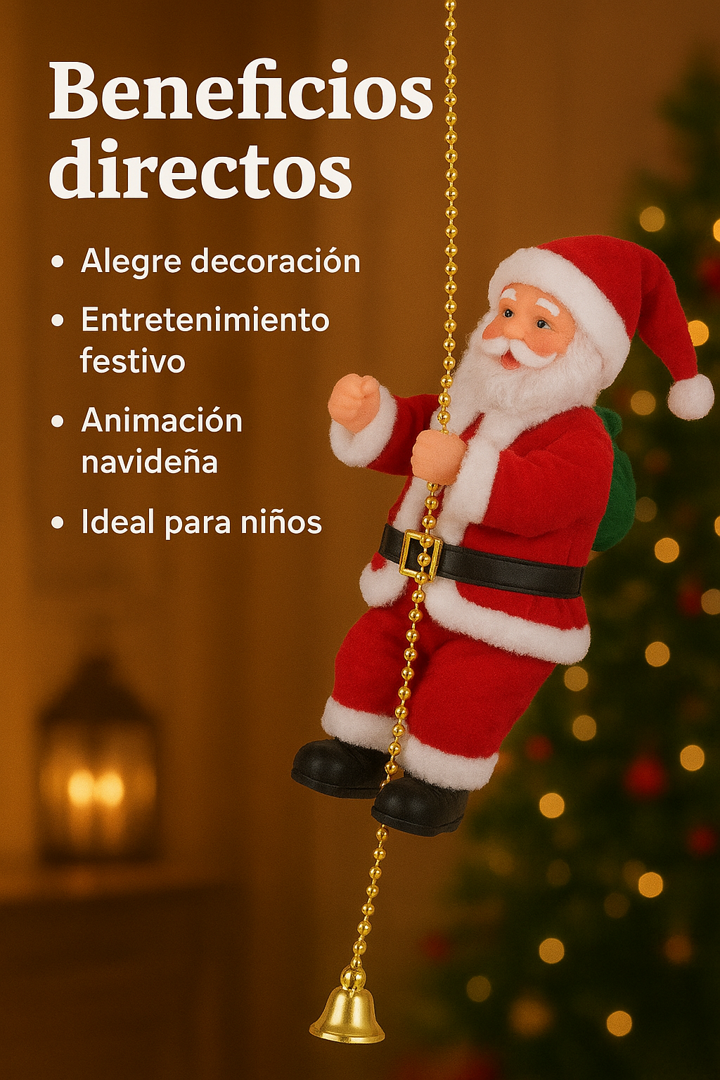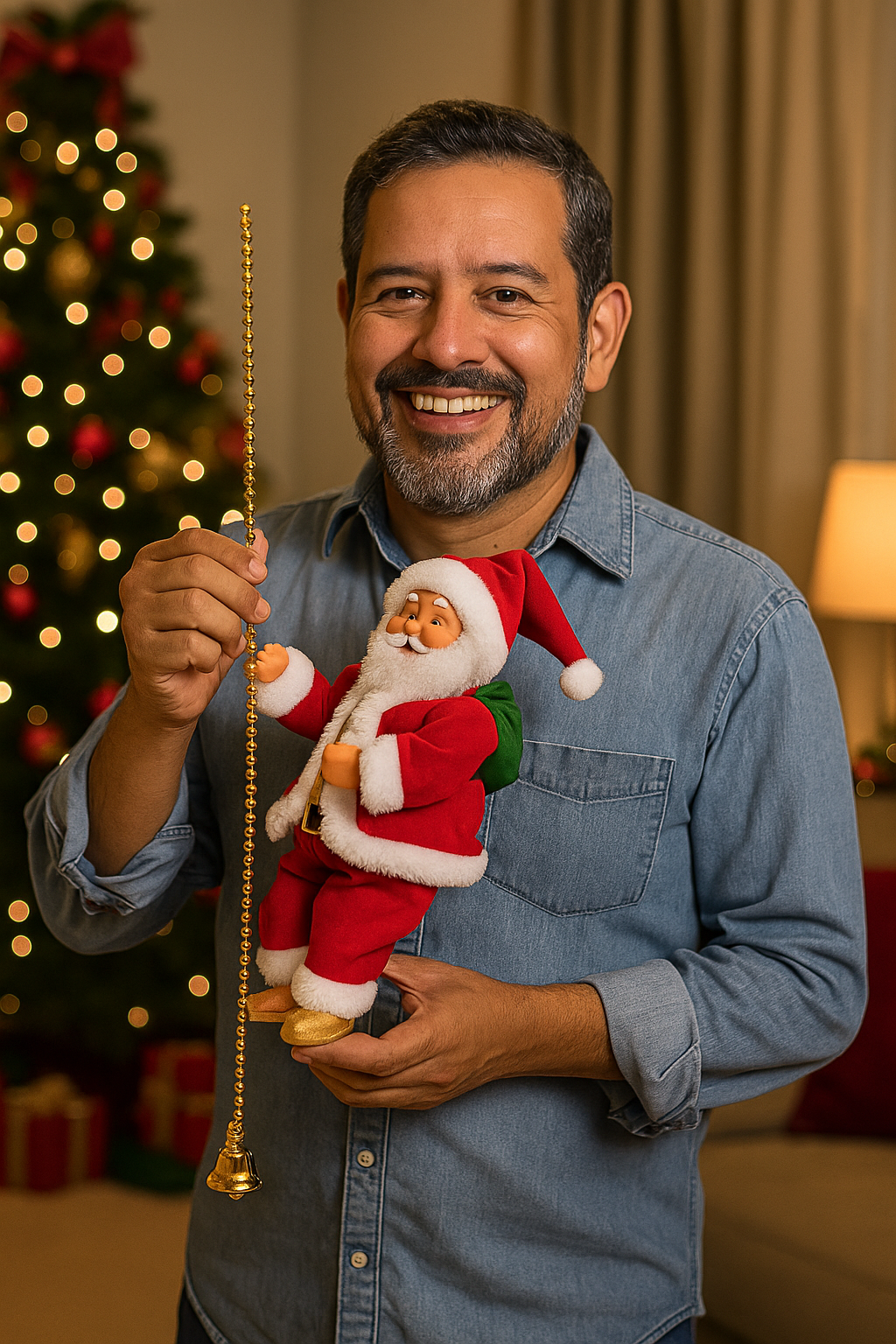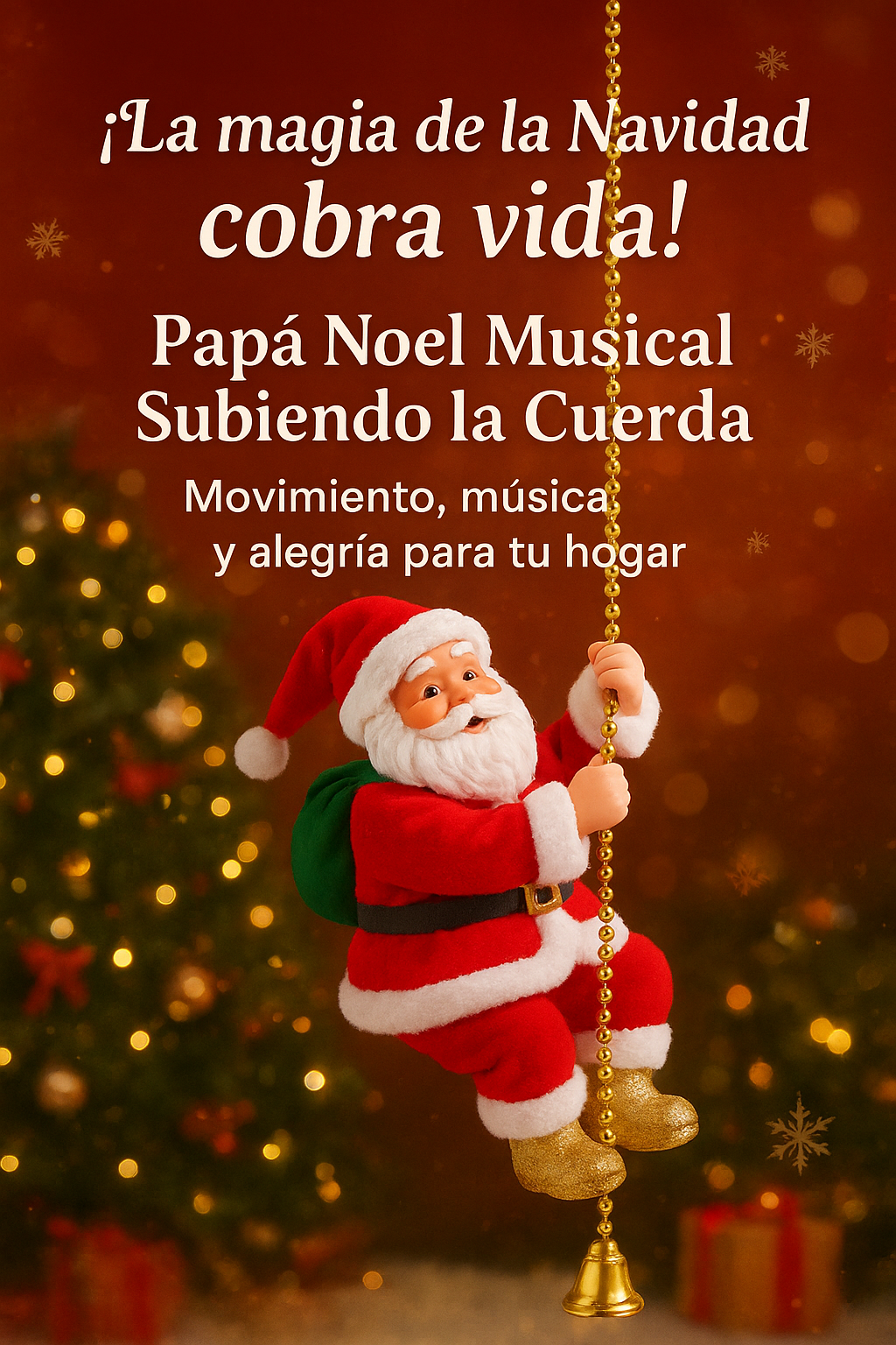 Este Santa no solo adorna… cobran vida tus decoraciones. El movimiento automático subiendo y bajando por la cuerda transforma cualquier ambiente en una escena navideña llena de encanto.